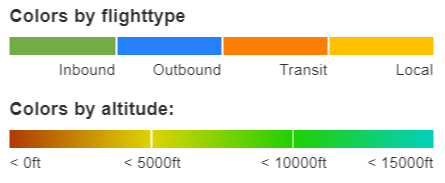 Les couleurs des icônes de l'avion peuvent représenter le type de vol ou l'altitude du vol en fonction de vos paramètres.